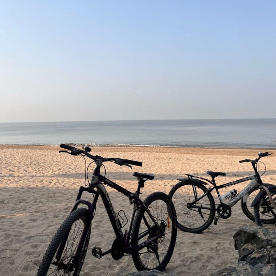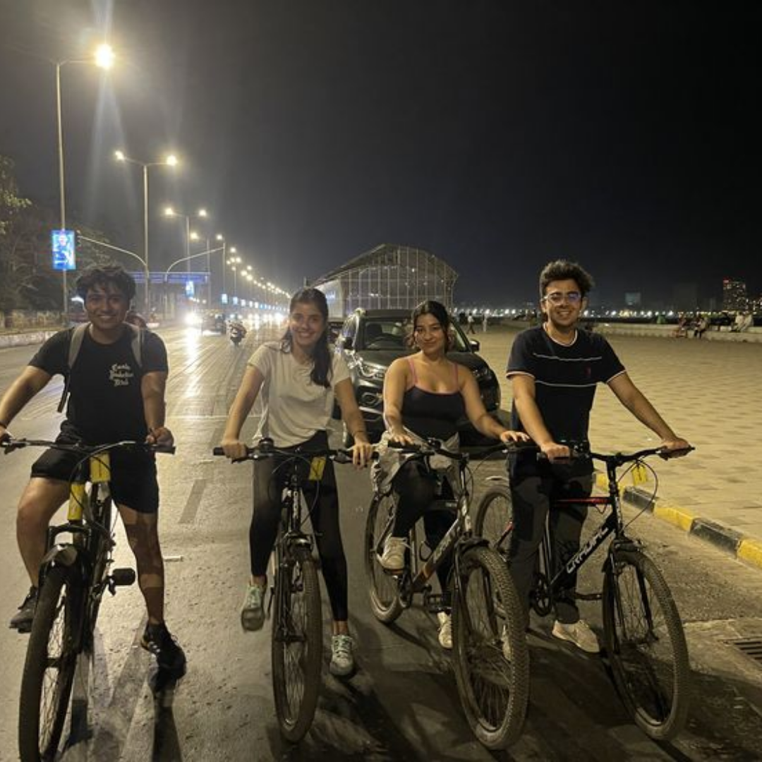 Our 30 km midnight cycling experience is exactly what you need.Imagine riding through the city when it’s at its most magical cool Mumbai breeze brushing past, glowing street lights guiding your way, and a comforting cup of hot chai waiting along the journey. It’s not just a ride it’s an experience.Every memory of Mumbai begins with the iconic Gateway of India, standing proudly by the harbour, facing the majestic Taj Mahal Palace. This is where our journey begins.From there, we ride across the stunning arc of Marine Drive the city’s very own C-shaped jewel before heading into the heart of Mumbai. Along the way, you’ll pass expansive playgrounds, colonial-era architecture, and historic landmarks like the Rajabai Clock Tower and the Bombay High Court.We glide through the beautifully designed Flora Fountain and pause by the iconic Horniman Circle a favorite Bollywood chai spot full of charm and stories.Feel the energy shift as you ride towards Worli Sea Face, where breathtaking skyline views meet the magnificent Bandra-Worli Sea Link a symbol of modern Mumbai.Finally, we pass the serene and spiritual Haji Ali Dargah, standing gracefully amidst the sea before concluding our journey at Nariman Point.